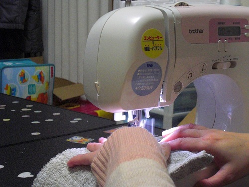 教科の勉強。ミシンを使って雑巾をつくる(兼、ミシンの練習)