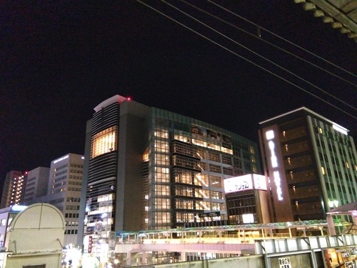 豊田市駅ホームから撮影。真ん中の大きな建物が、コンサートホールがある豊田参合館。